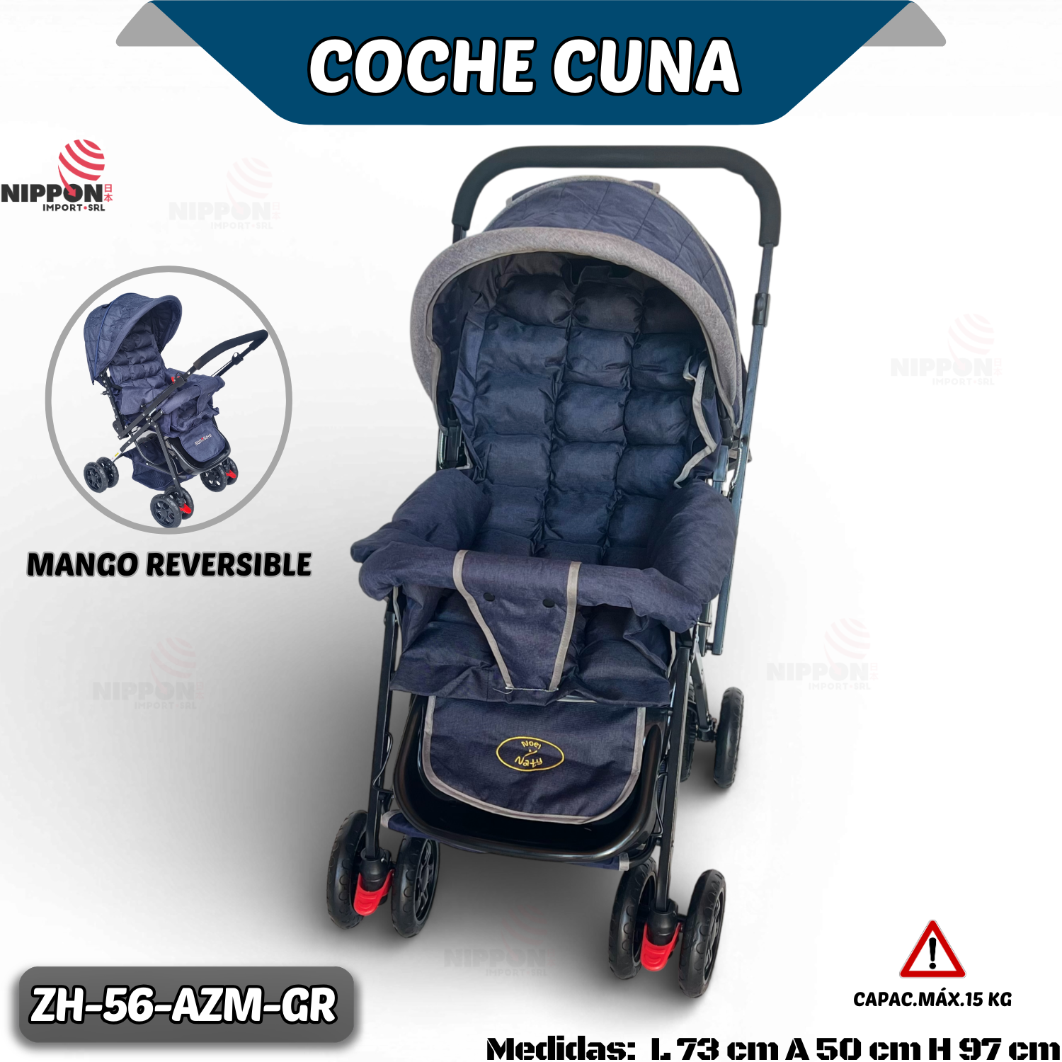 COCHE CUNA AZUL MARINO GRIS ( CDE )
