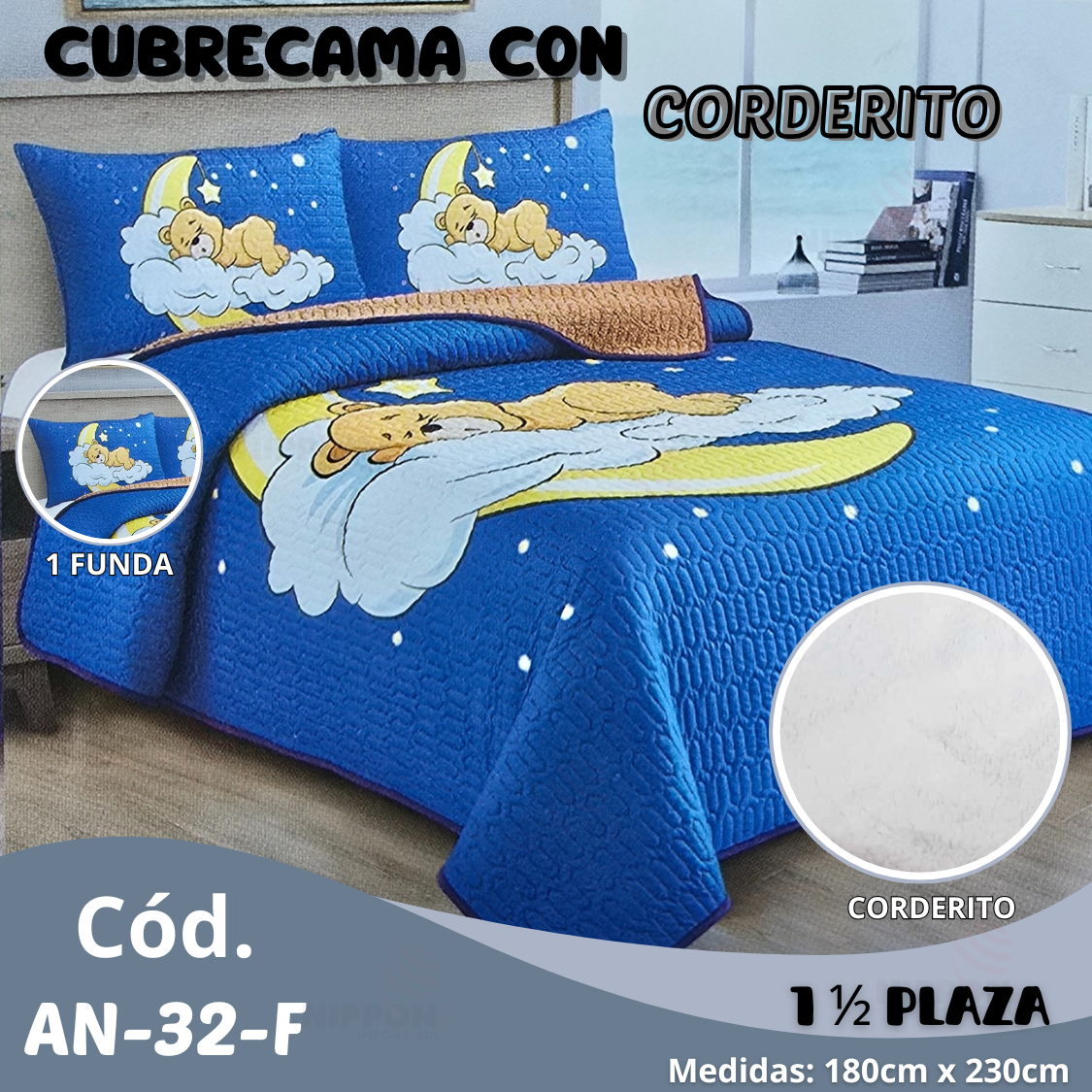 CUBRE CAMA CON CORDERITO INF 1,5 PLAZA ( ASU ) cantidad