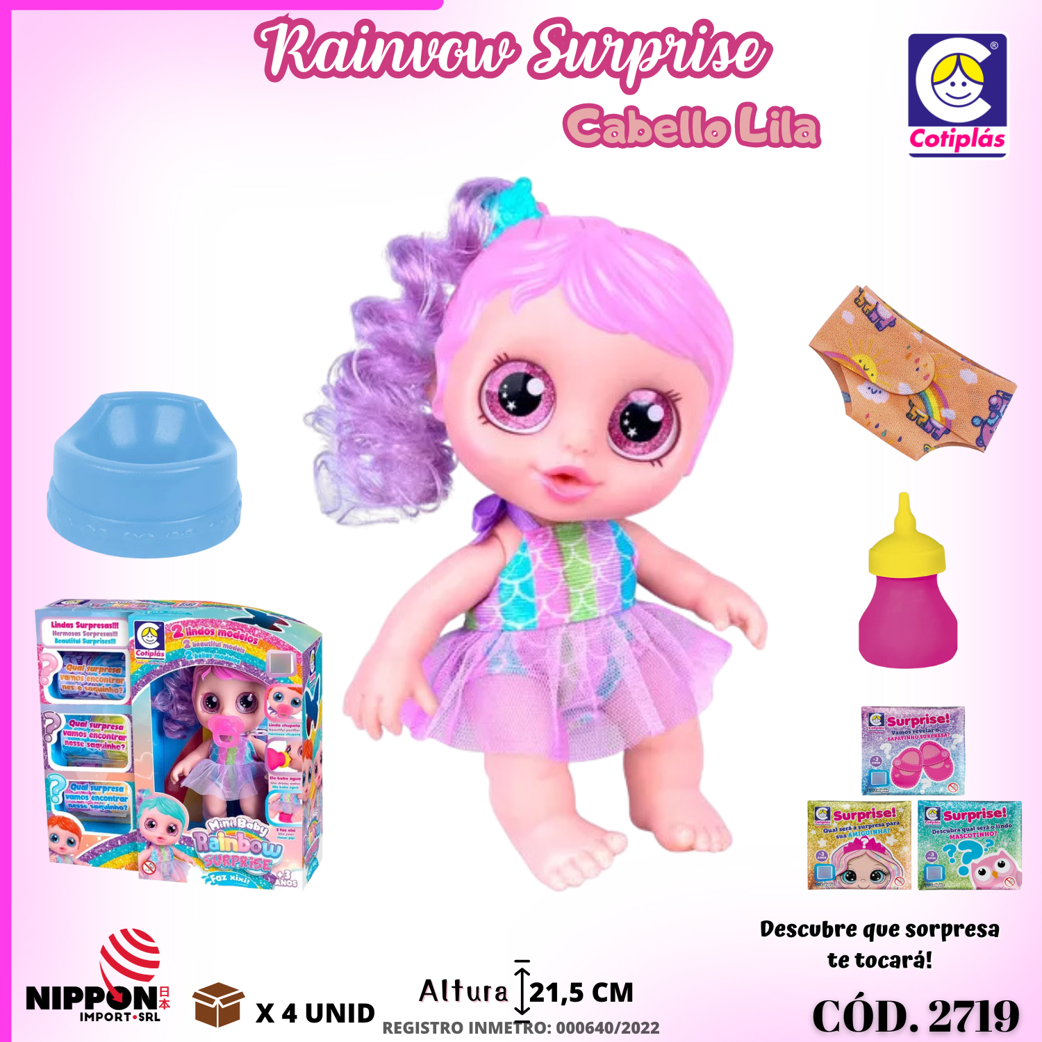 MINI MUÑECA RAINBOW SURPRISE CABELLO LILA