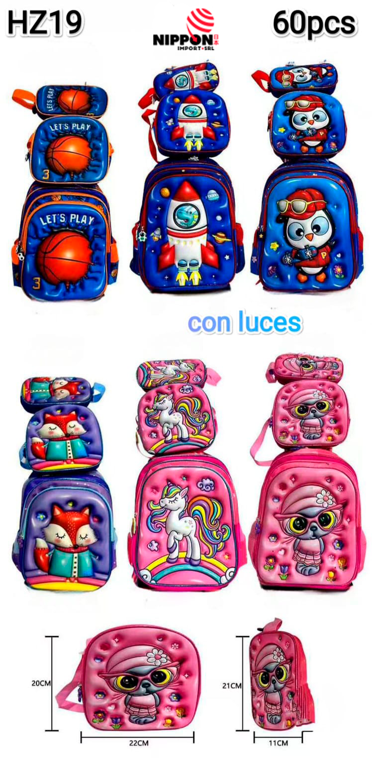 MOCHILA 3 PZS CON LUCES ( CDE ) cantidad